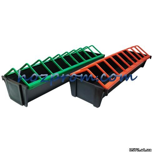 Лотковые кормушки для кормления молодняка и взрослой птицы при напольном и клеточном содержании. Изготовлена из качественного прочного пластика, корм не высыпается за пределы кормушки.